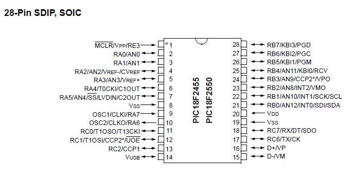 PIC18F4550-I/PT features: (1)USB V2.0 Compliant SIE; (2)Low-speed (1.5 Mb/s) and full-speed (12 Mb/s); (3)Supports control, interrupt, isochronous and bulk transfers; (4)Supports up to 32 endpoints (16 bidirectional); (5)1-Kbyte dual access RAM for USB; (6)On-board USB transceiver with on-chip voltage regulator; (7)Interface for off-chip USB transceiver; (8)Streaming Parallel Port (SPP) for USB streaming transfers (40/44-pin devices only).